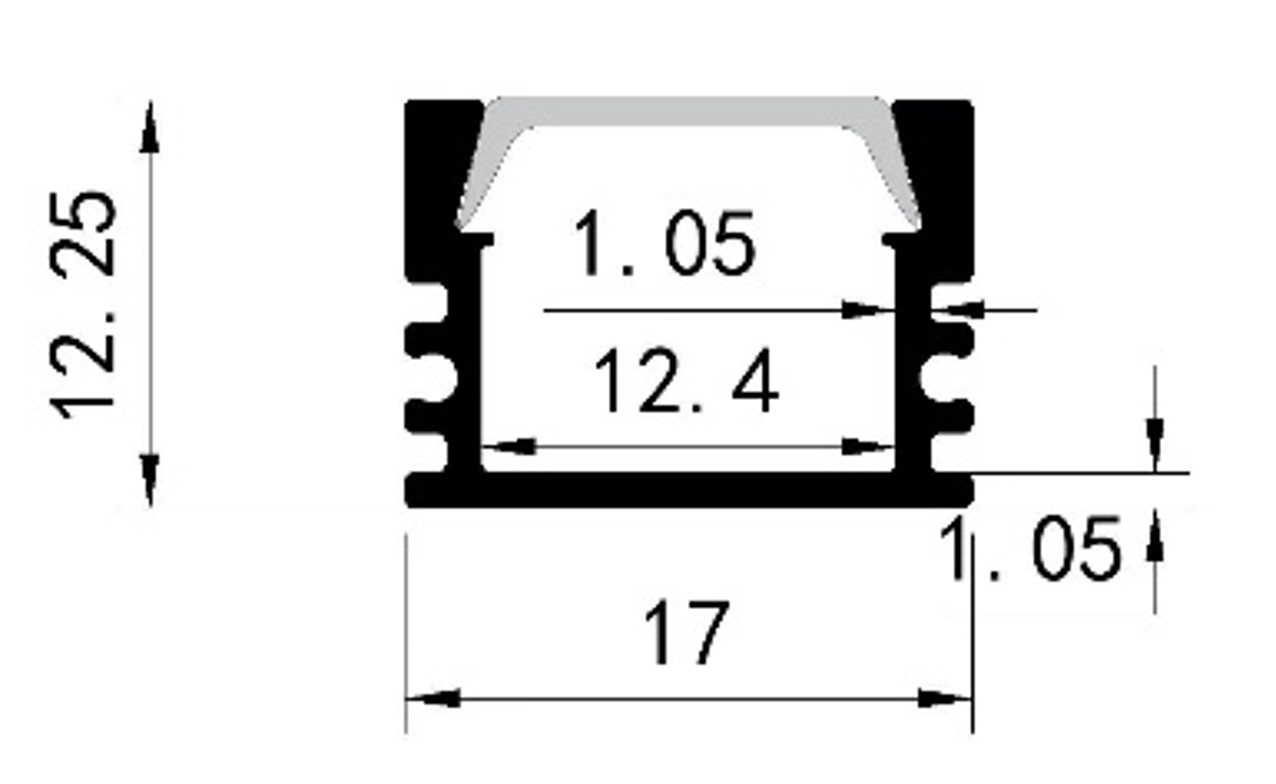 Aluminum BLACK profile 2m DEEP wall mounted for led strips max W:12mm L:2m W:17mm H:6mm SET WITH 2 END CAPS AND FROSTED COVER